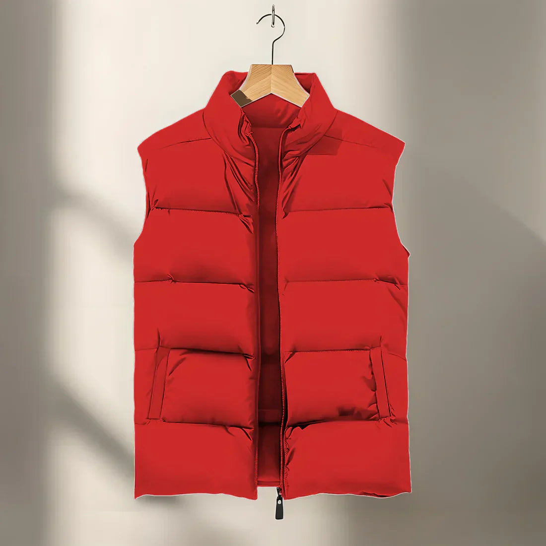 Diese stilvolle Pufferweste kombiniert wärmende Funktionalität mit einem modernen, sportlichen Look. Die leichte Wattierung speichert Wärme, ohne aufzutragen, und das ärmellose Design sorgt für maximale Bewegungsfreiheit. Der durchgehende Reißverschluss ermöglicht ein einfaches An und Ausziehen sowie eine individuell anpassbare Belüftung. Vielseitig kombinierbar, passt diese Weste perfekt über einen Pullover oder ein Hemd und ist ideal für kühle Tage, wechselhaftes Wetter oder einen aktiven Lebensstil.
