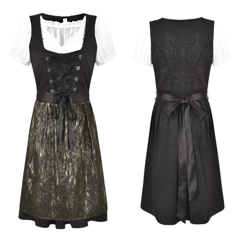• Authentischer Trachtenstil: Mieder, ausgestellter Rock und Schürze ergeben ein traditionsreiches, modernes Ensemble.