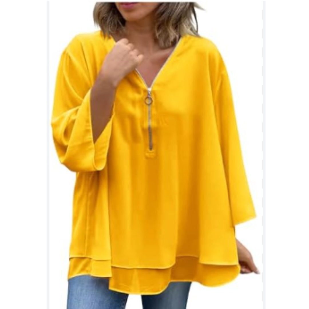 Entdecken Sie Eleganz mit diesem Damen-Oberteil mit halbem Reißverschluss und V-Ausschnitt – ein vielseitiges Basic, das Eleganz mit Alltagskomfort verbindet. Der schmeichelnde V-Ausschnitt und der elegante Frontreißverschluss verleihen jedem Outfit eine raffinierte und zugleich moderne Note. Ob auf dem Weg zur Arbeit, beim Treffen mit Freunden oder bei einem entspannten Abend – mit diesem Oberteil sehen Sie den ganzen Tag elegant aus und fühlen sich wohl.