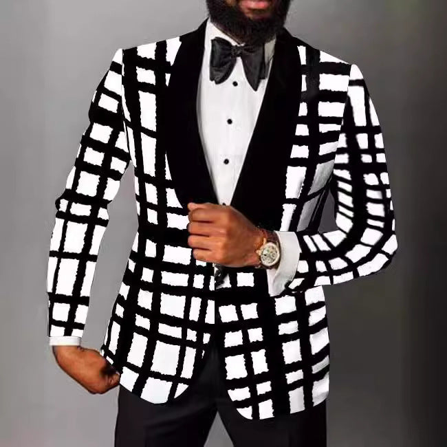 Herren eleganter Smoking mit auffälligem Karomuster Aliams