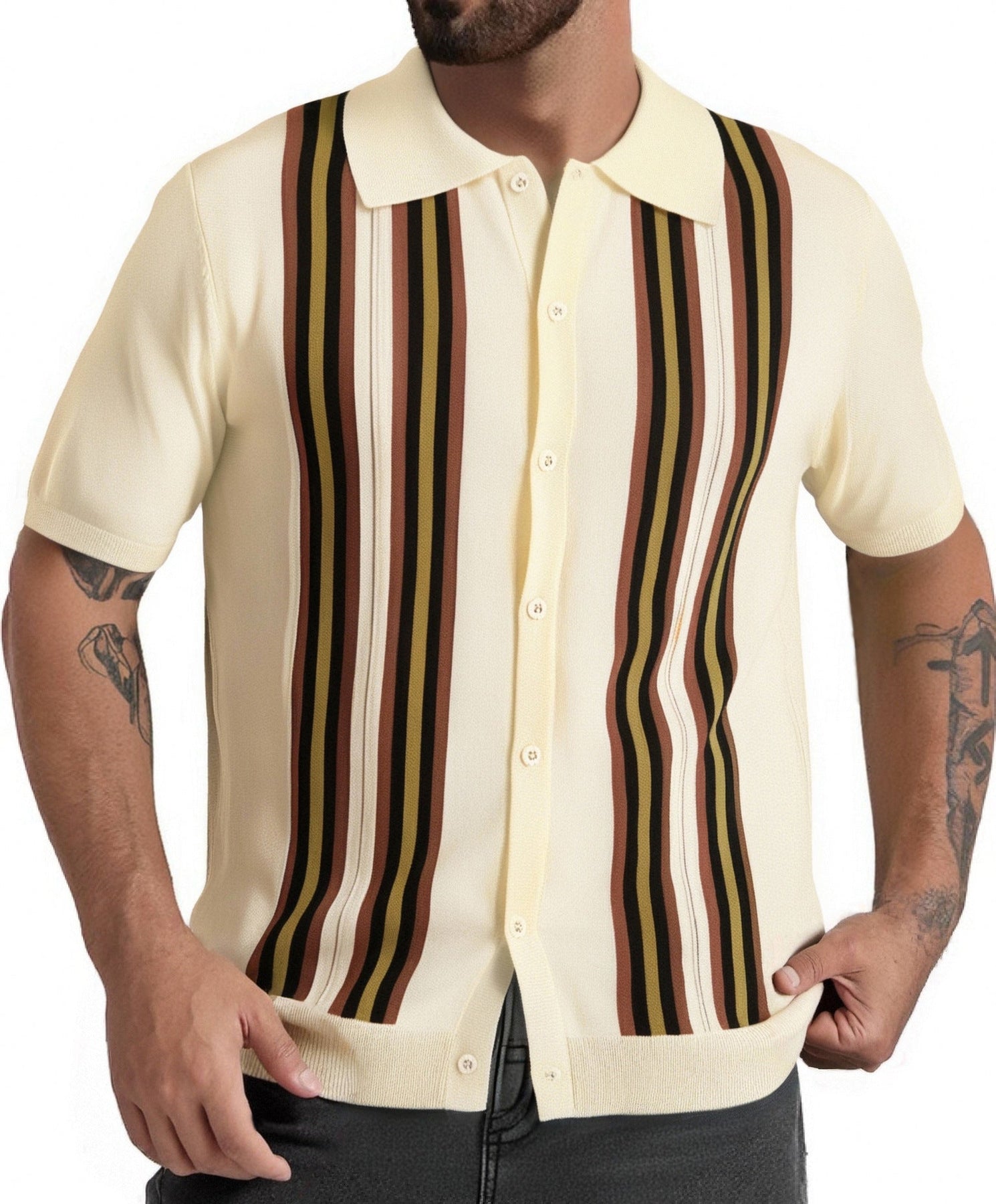 Entdecken Sie das Herren kurzärmlige modische Hemd mit Streifen von Aliams, das ideal für stilbewusste Männer ist, die sowohl Komfort als auch Eleganz schätzen. Dieses Hemd kombiniert moderne Designelemente mit einem klassischen Schnitt und ist perfekt für jede Gelegenheit, sei es ein entspanntes Meeting oder ein Ausflug am Wochenende.