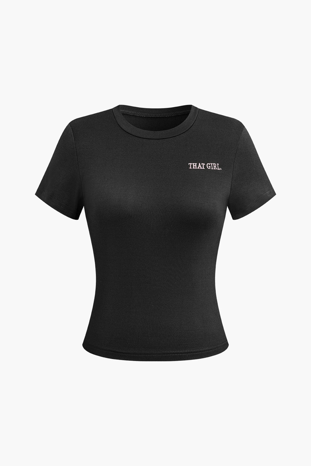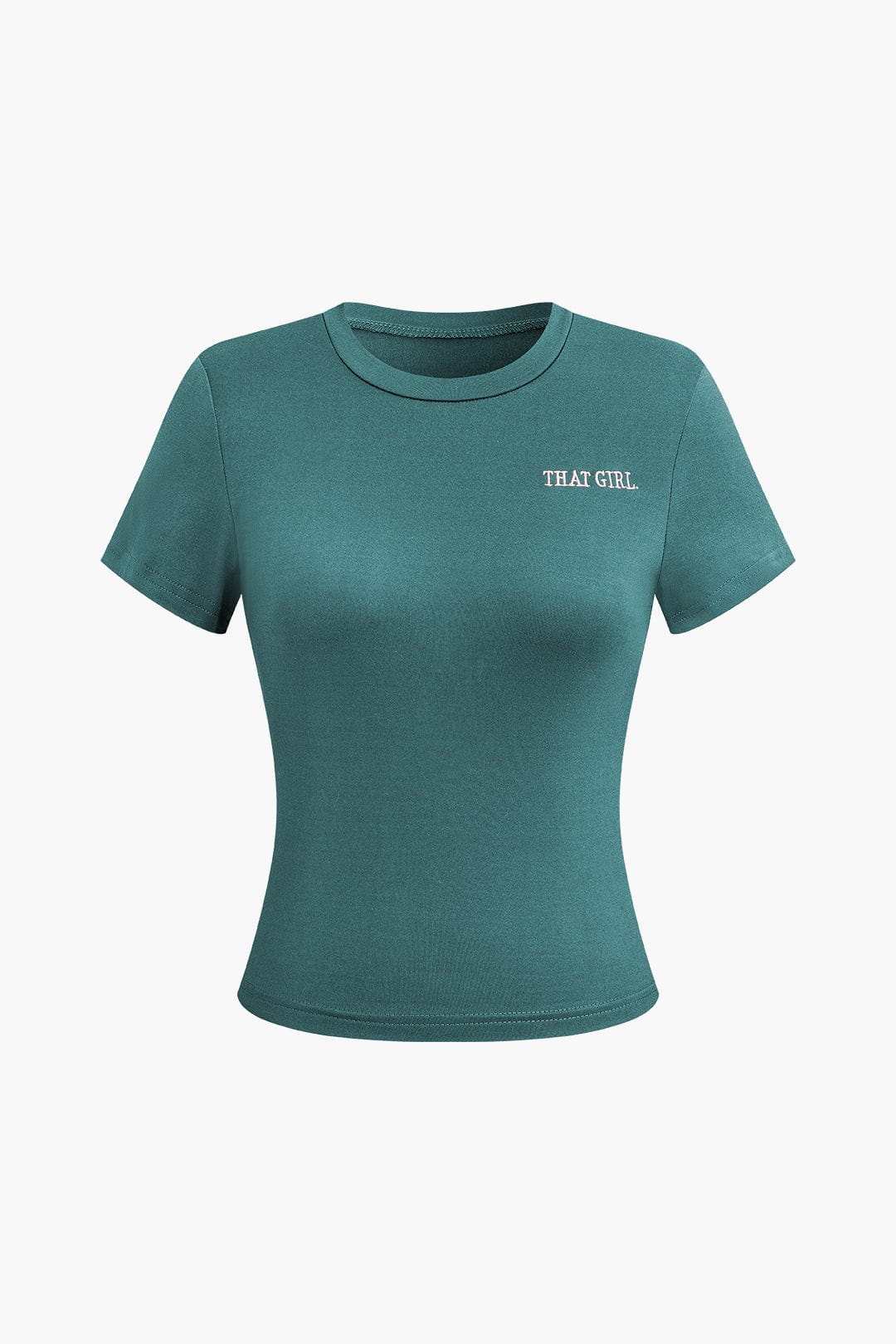 1. Stylisches T-Shirt mit Schriftzug – Ein moderner Look mit sportlicher Note.
