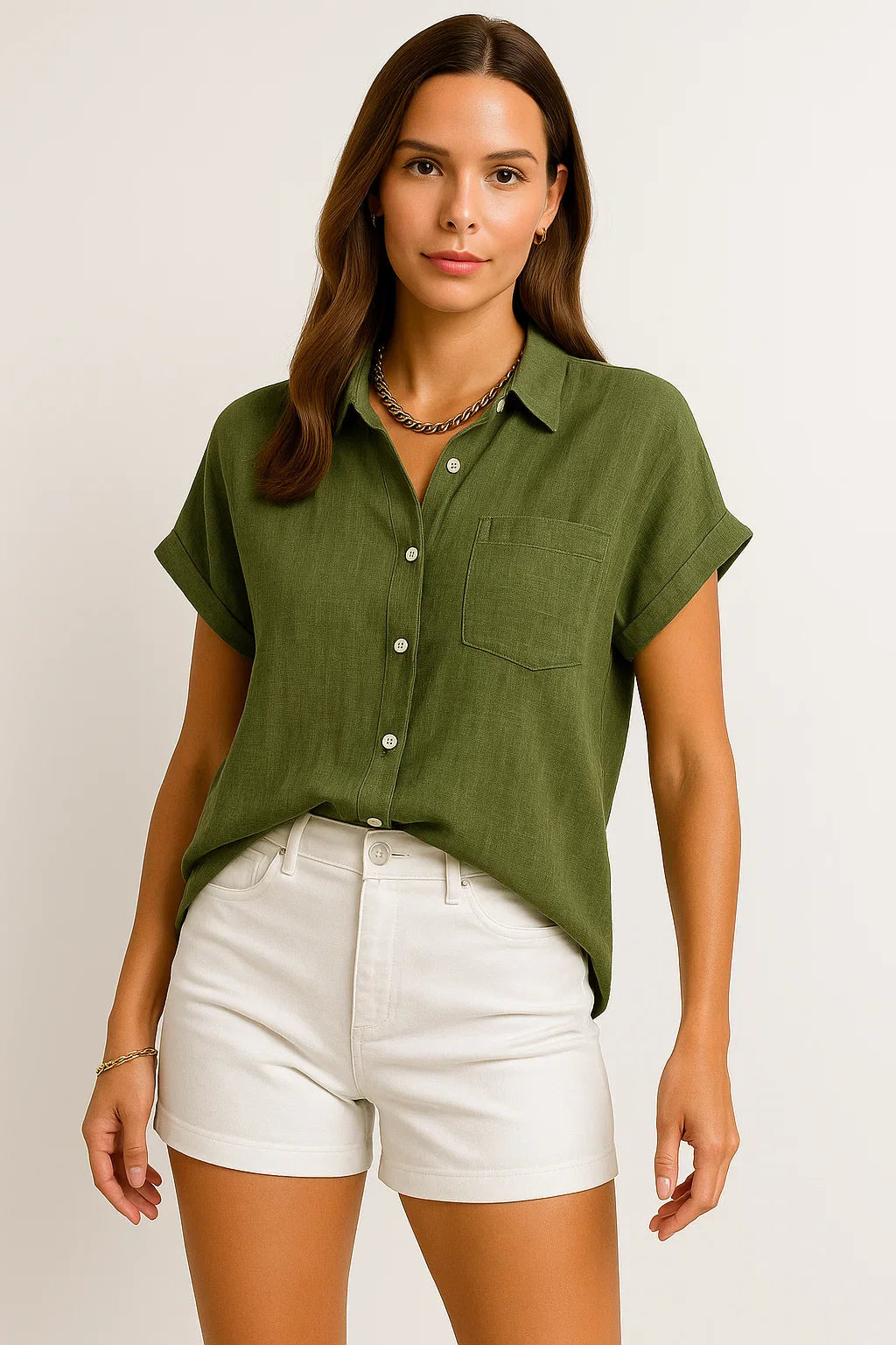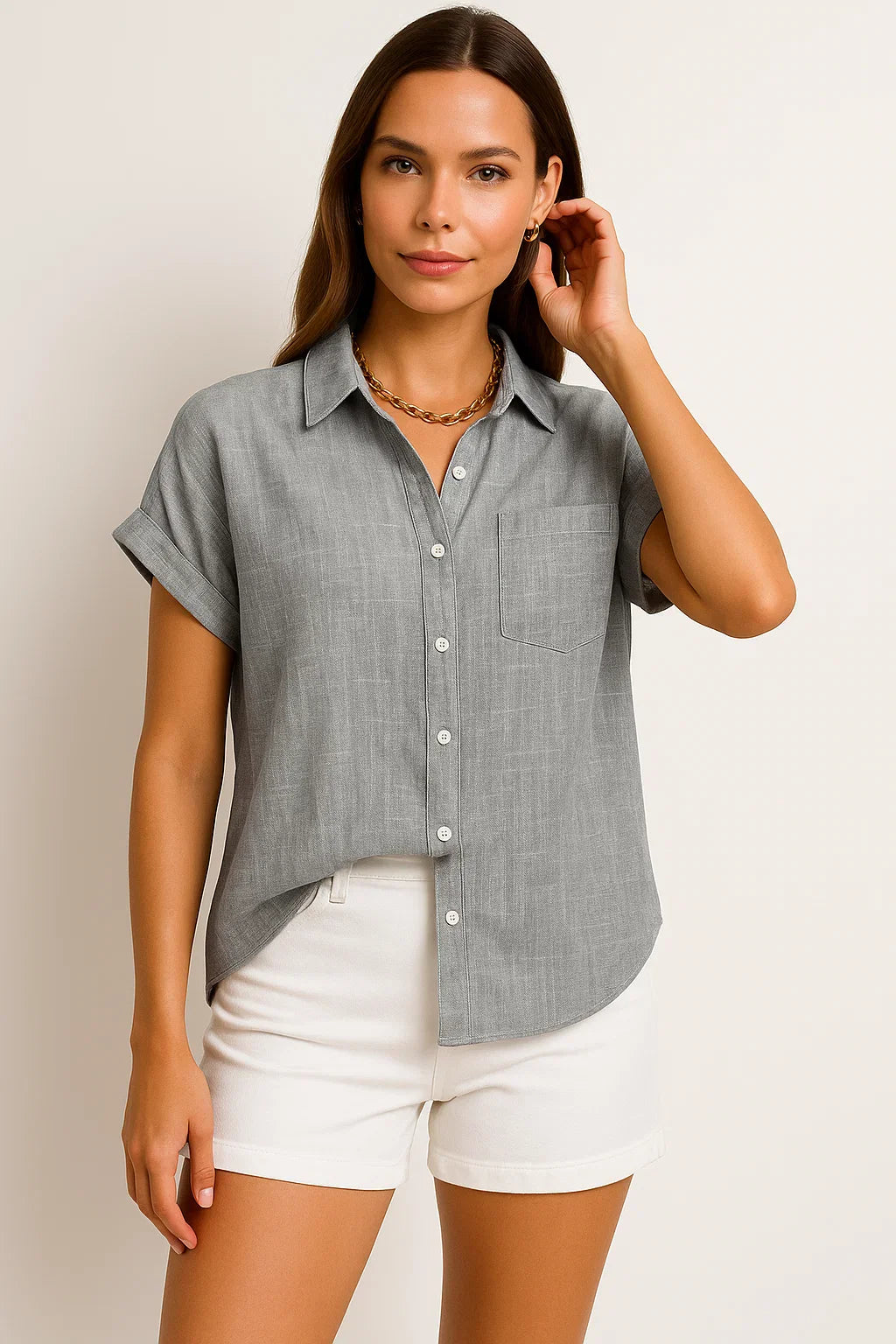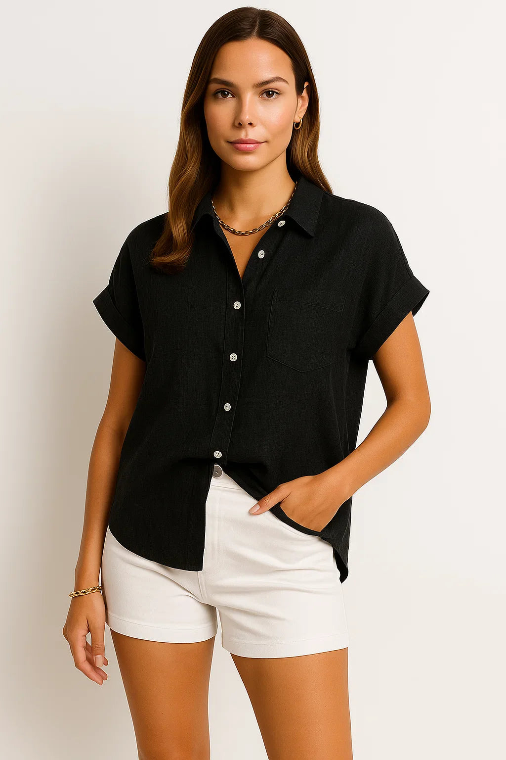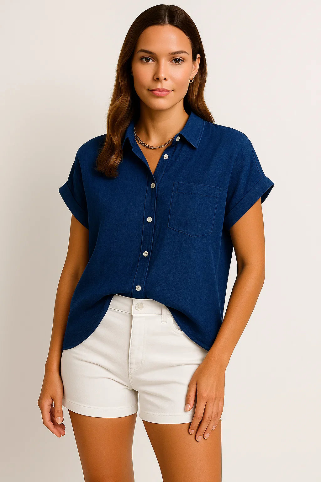 - Zeitloses Design: Die schlichte Optik mit kurzen Ärmeln macht diese Bluse zu einem stilvollen Begleiter für jede Jahreszeit.