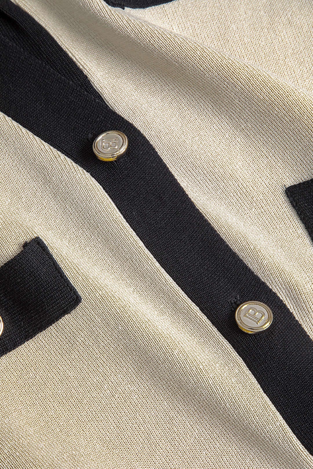 2. Klassischer Cardigan mit goldenen Knöpfen – Verleiht dem Set eine edle Ausstrahlung.