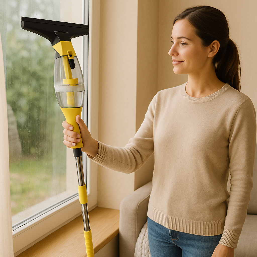 • Teleskopstange: erreicht hohe oder schwer zugängliche Fenster ohne Leiter