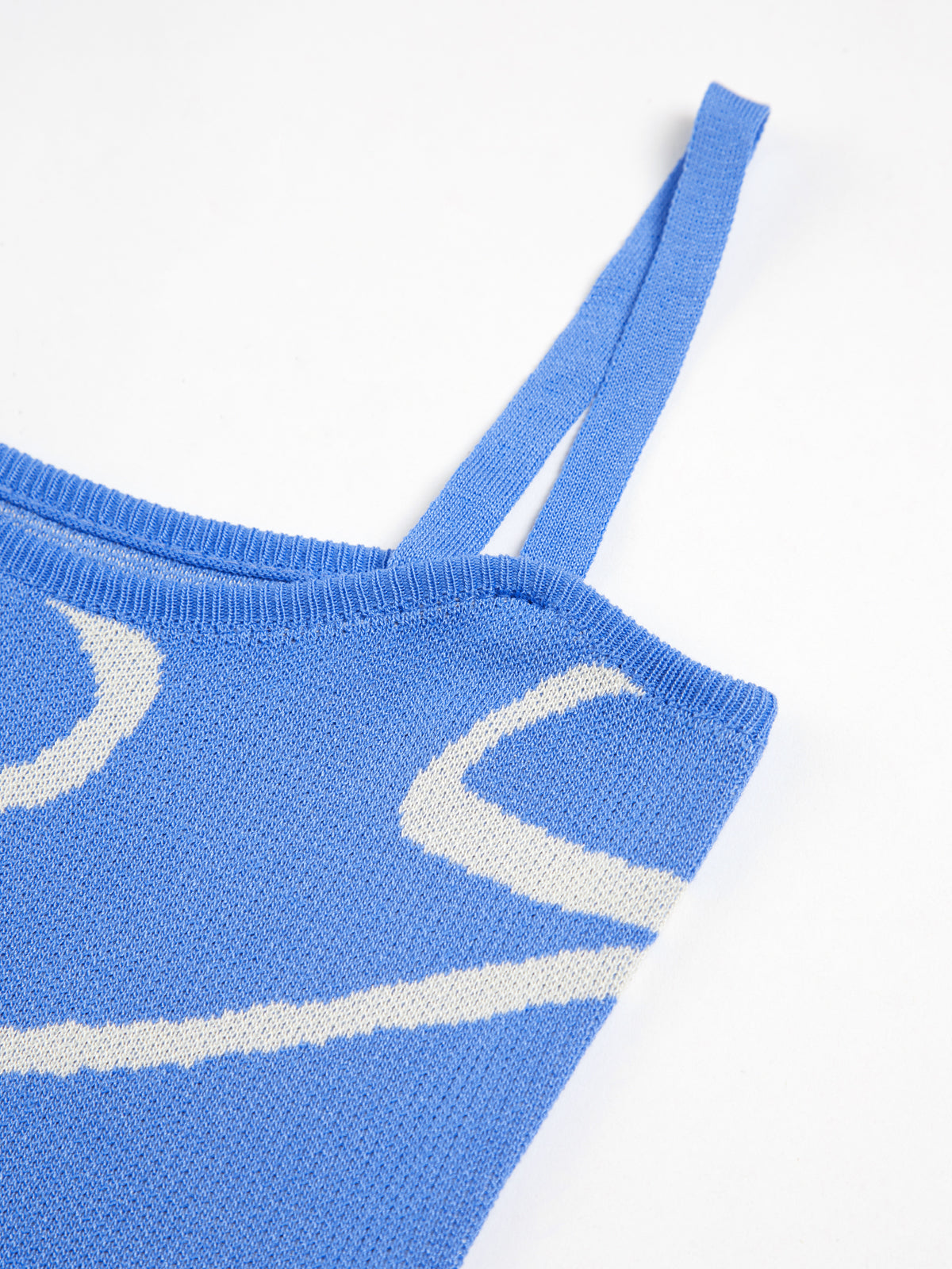 Das Maisie Midikleid verbindet schlichte Raffinesse mit einem modernen, künstlerischen Touch. Das abstrakte Wellenmuster sorgt für einen einzigartigen Look, während der weiche Strickstoff eine figurbetonte, aber dennoch bequeme Passform bietet. Die zarten Spaghettiträger und der gerade Ausschnitt verleihen dem Design eine feminine und elegante Note. Der fließende Midischnitt mit dezentem Seitenschlitz sorgt für Bewegungsfreiheit und eine stilvolle Silhouette. Perfekt für stilvolle Alltagslooks, Dinner-Dates oder entspannte Abendveranstaltungen.