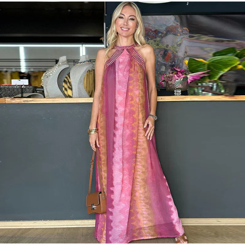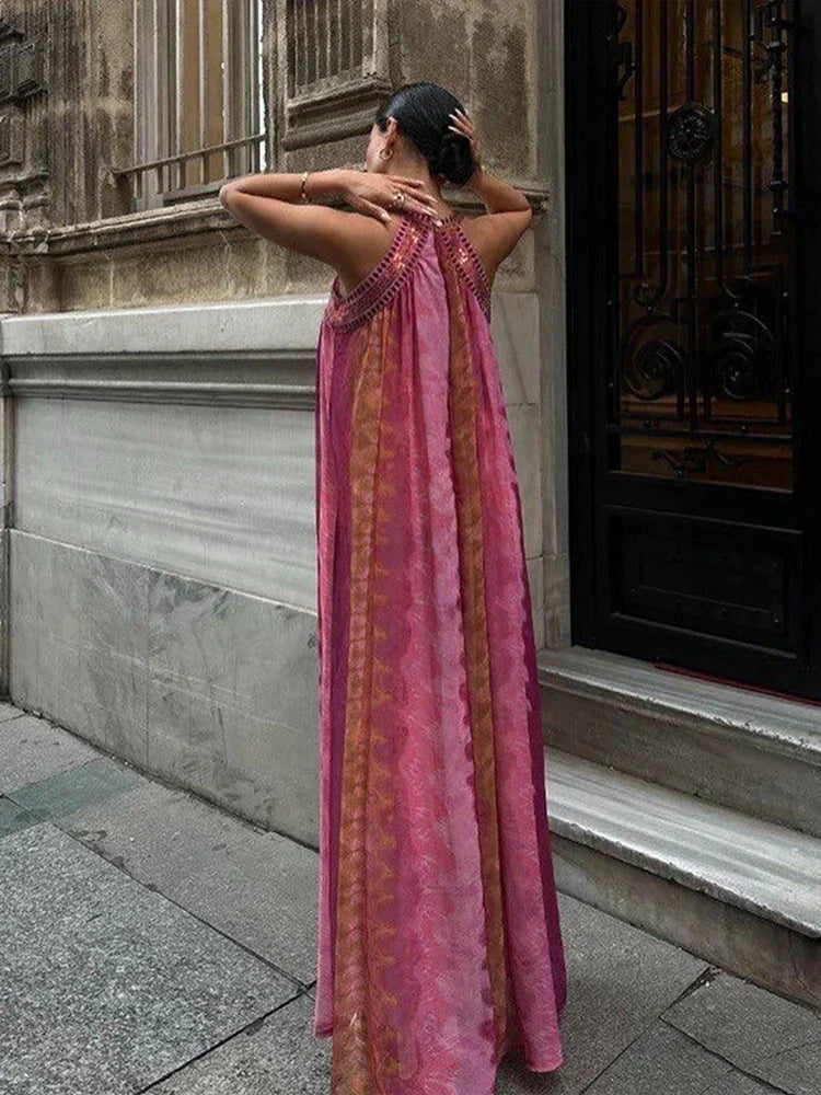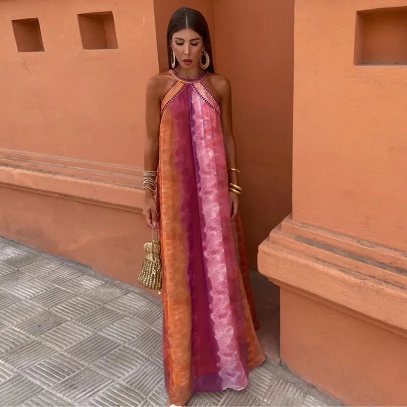 Das einzigartige Tie-Dye-Muster sorgt für einen Hauch von Vintage, während der fließende lange Rock eine anmutige und lässige Silhouette verleiht. Dieses Kleid ist ideal für sommerliche Ausflüge oder Strandpartys und verbindet nostalgischen Charme mit moderner Eleganz, was es zu einem Highlight in Ihrem Kleiderschrank macht