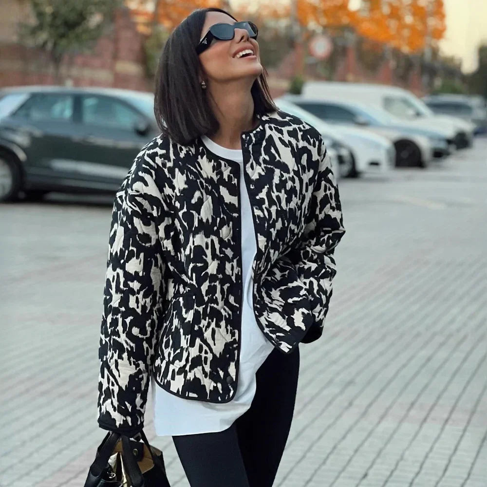 Bewältige kalte Tage mit Leichtigkeit in diesem leichten gepolsterten Layer, der alltägliche Funktionalität mit einem unverwechselbaren Stil kombiniert. Die oversized Silhouette bietet eine entspannte Eleganz, während die großen Taschen praktische Nützlichkeit mit modernem Charme vereinen. Hergestellt aus einem weichen und gemütlichen Stoff, hält sie dich warm, ohne zusätzliches Volumen hinzuzufügen. Ob du zu einem Brunch gehst oder shoppen gehst, diese Jacke vervollständigt deinen Look mit einem Hauch von natürlicher Eleganz.