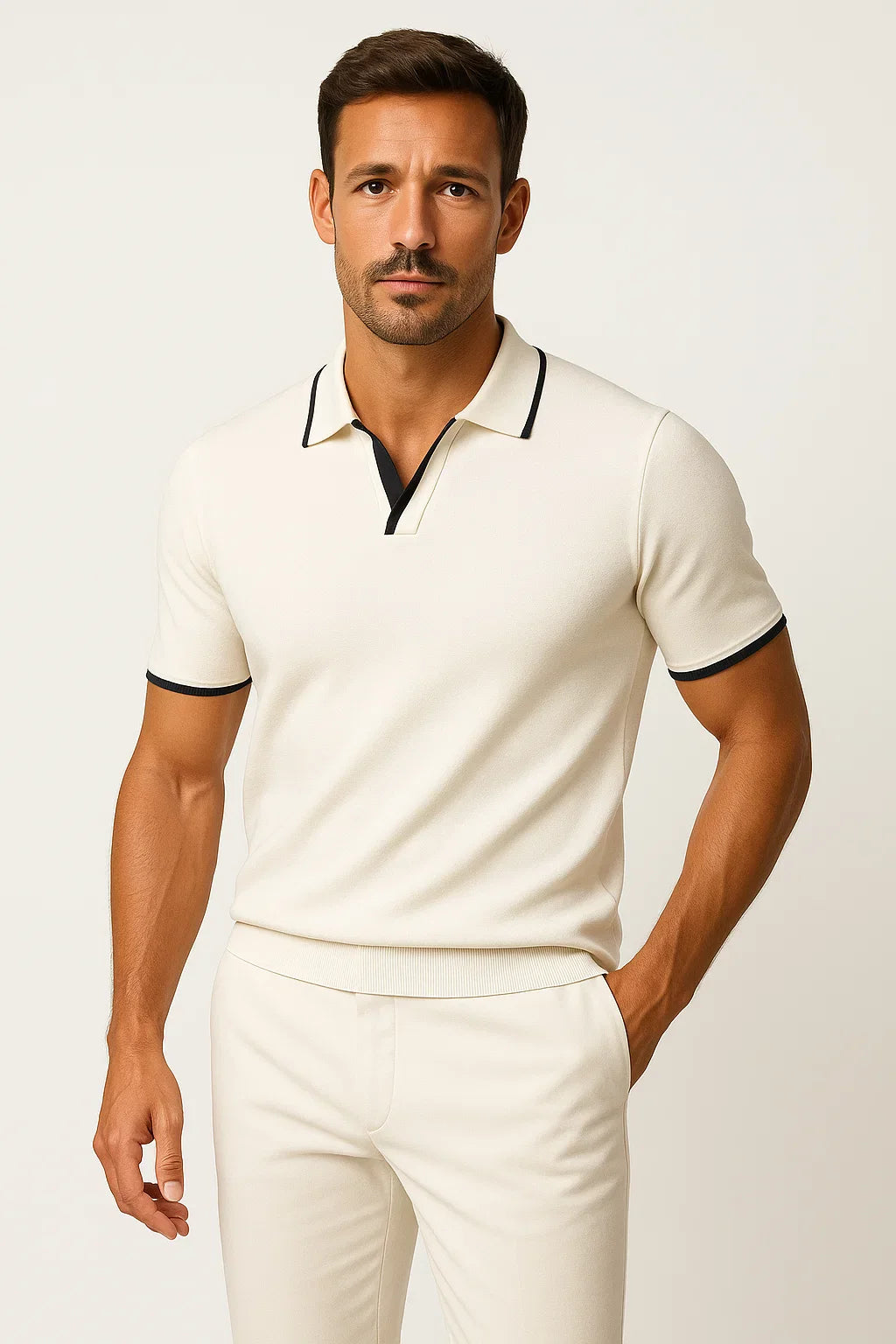Dieses Polo-Shirt kombiniert zeitlose Eleganz mit einem modernen Twist. Der klassische Polokragen und die Kontrastabschlüsse an den Ärmelbündchen verleihen ihm eine edle Note, während das weiche Material für außergewöhnlichen Komfort sorgt. Der figurbetonte Schnitt macht dieses Polo zum idealen Begleiter für Business Casual Outfits oder gehobene Freizeit Looks. Setze auf Raffinesse und verleihe deinem Look eine gepflegte, elegante Ausstrahlung, immer und überall.