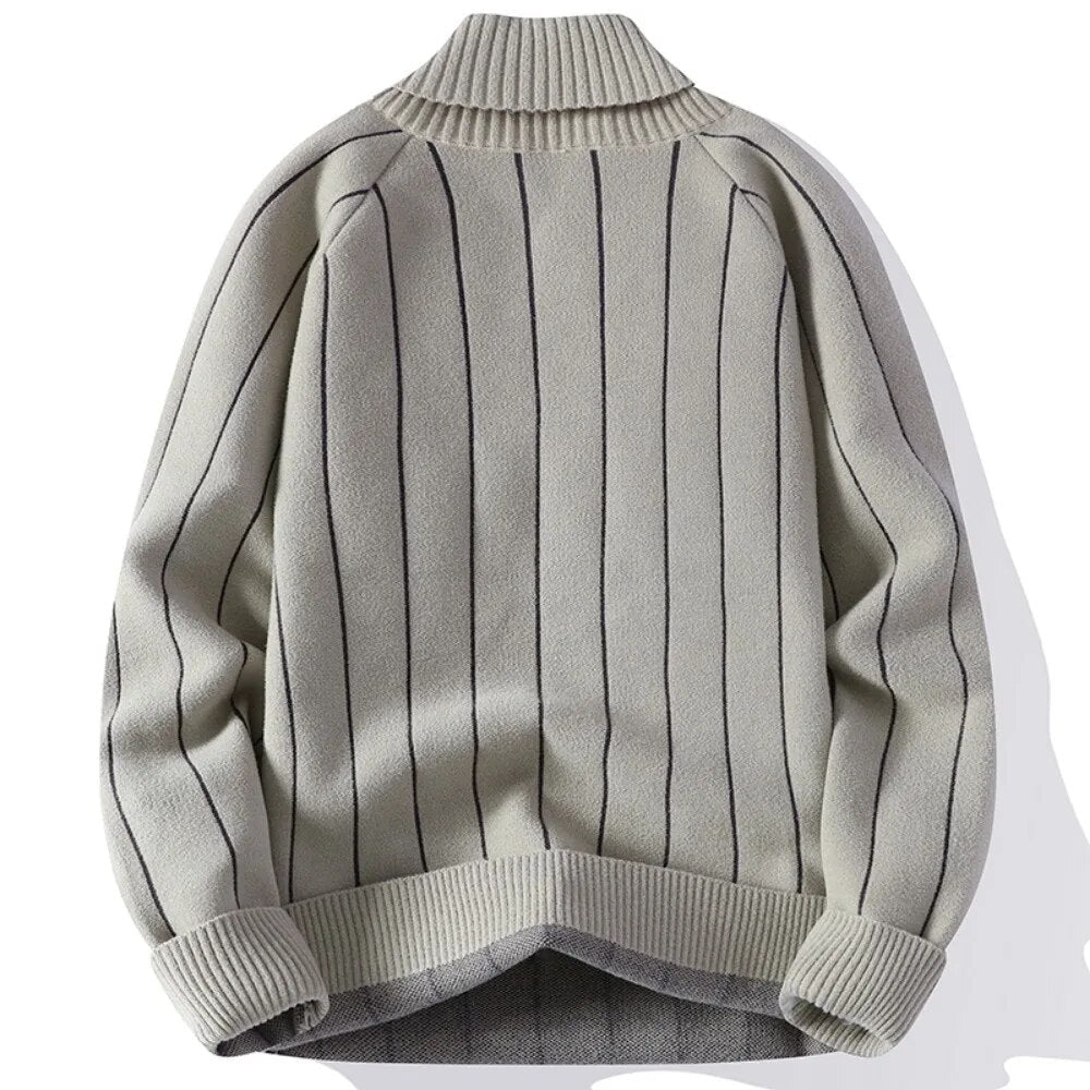 • Auffällige Streifen: Die vertikalen Streifen sorgen für einen stilvollen und modernen Look, der den Pullover optisch interessant macht und ihn von typischen Designs abhebt.
