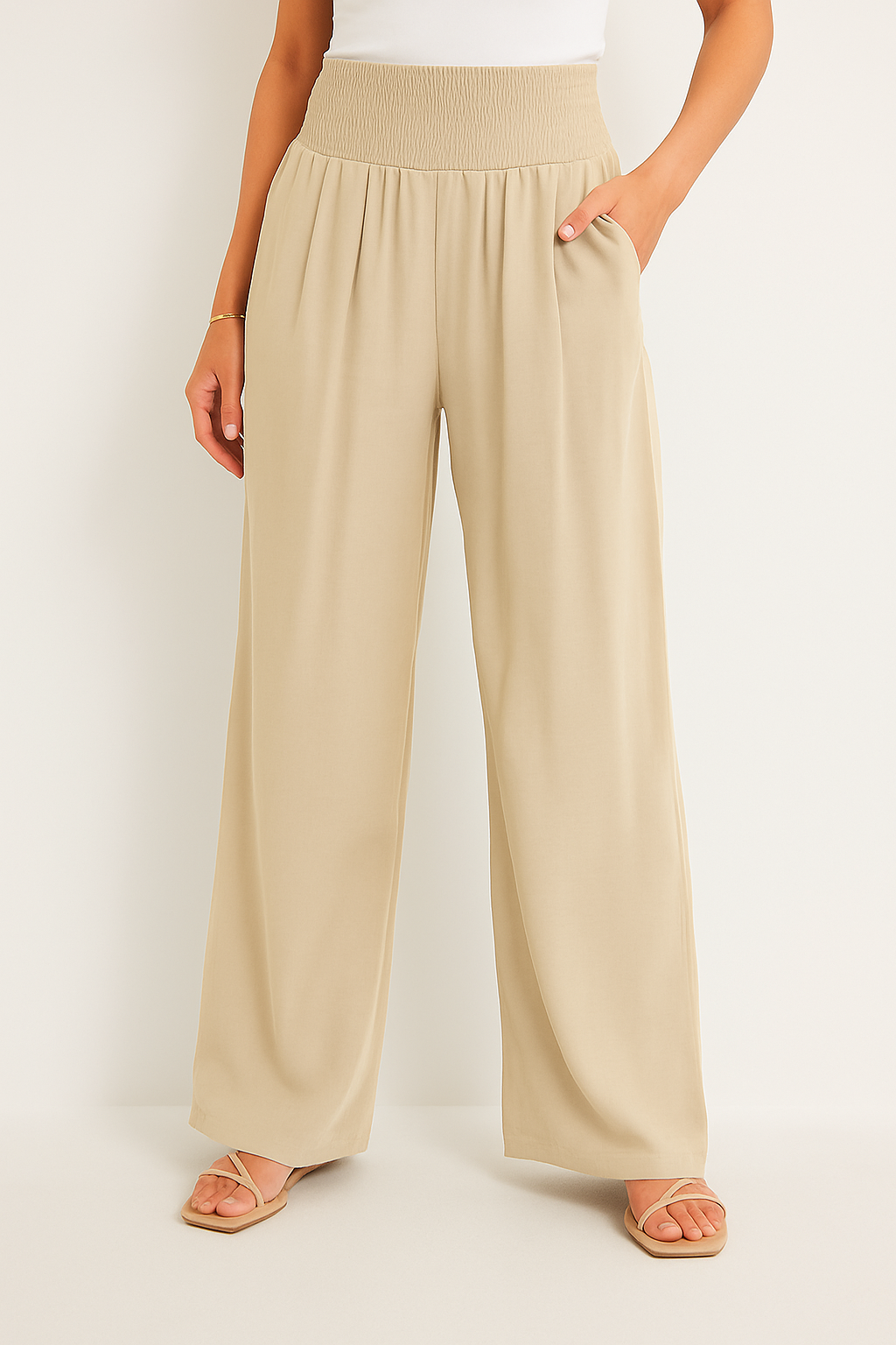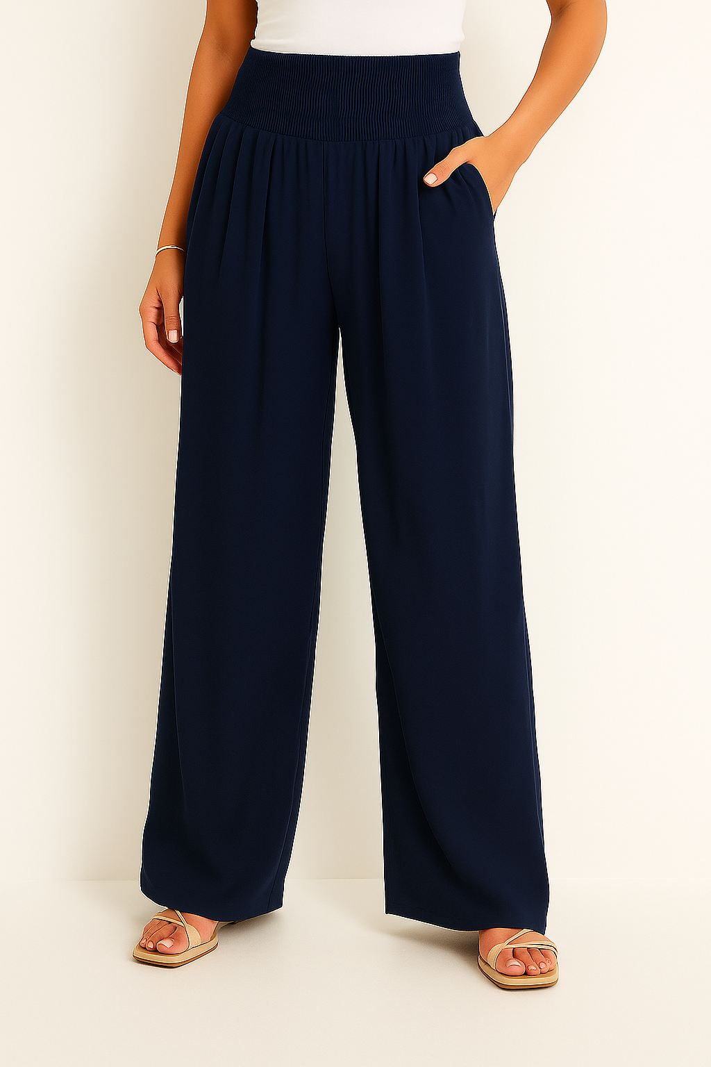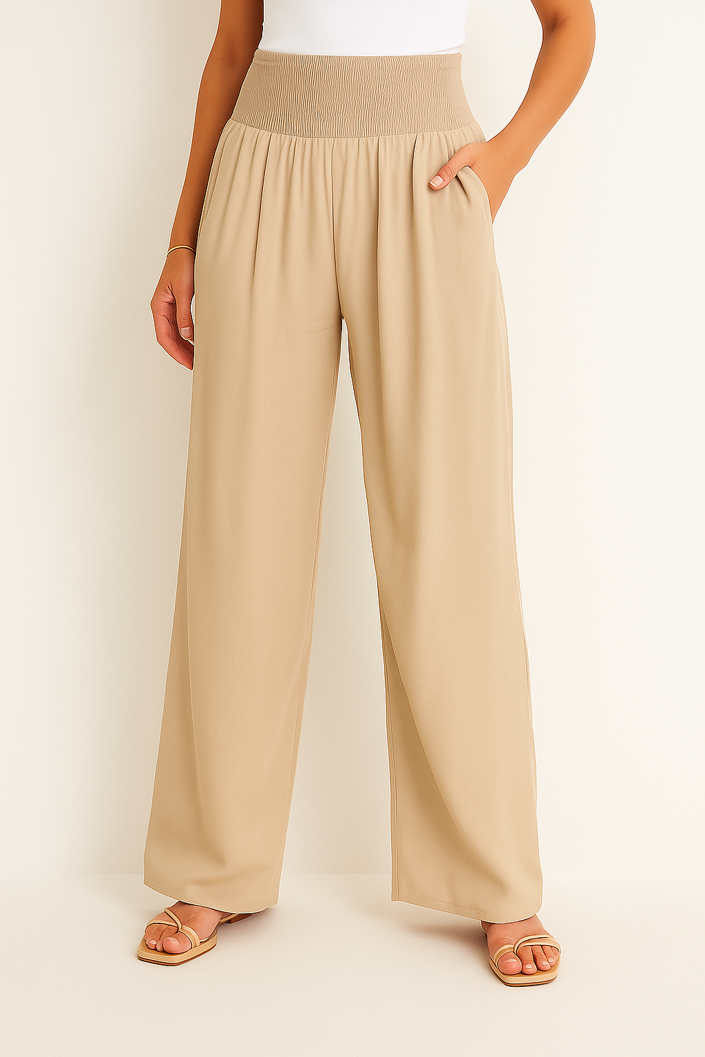 • Bequemer Smockbund: Der elastische High Waist Bund formt sanft die Taille und bietet ganztägigen Komfort ohne Einengen.